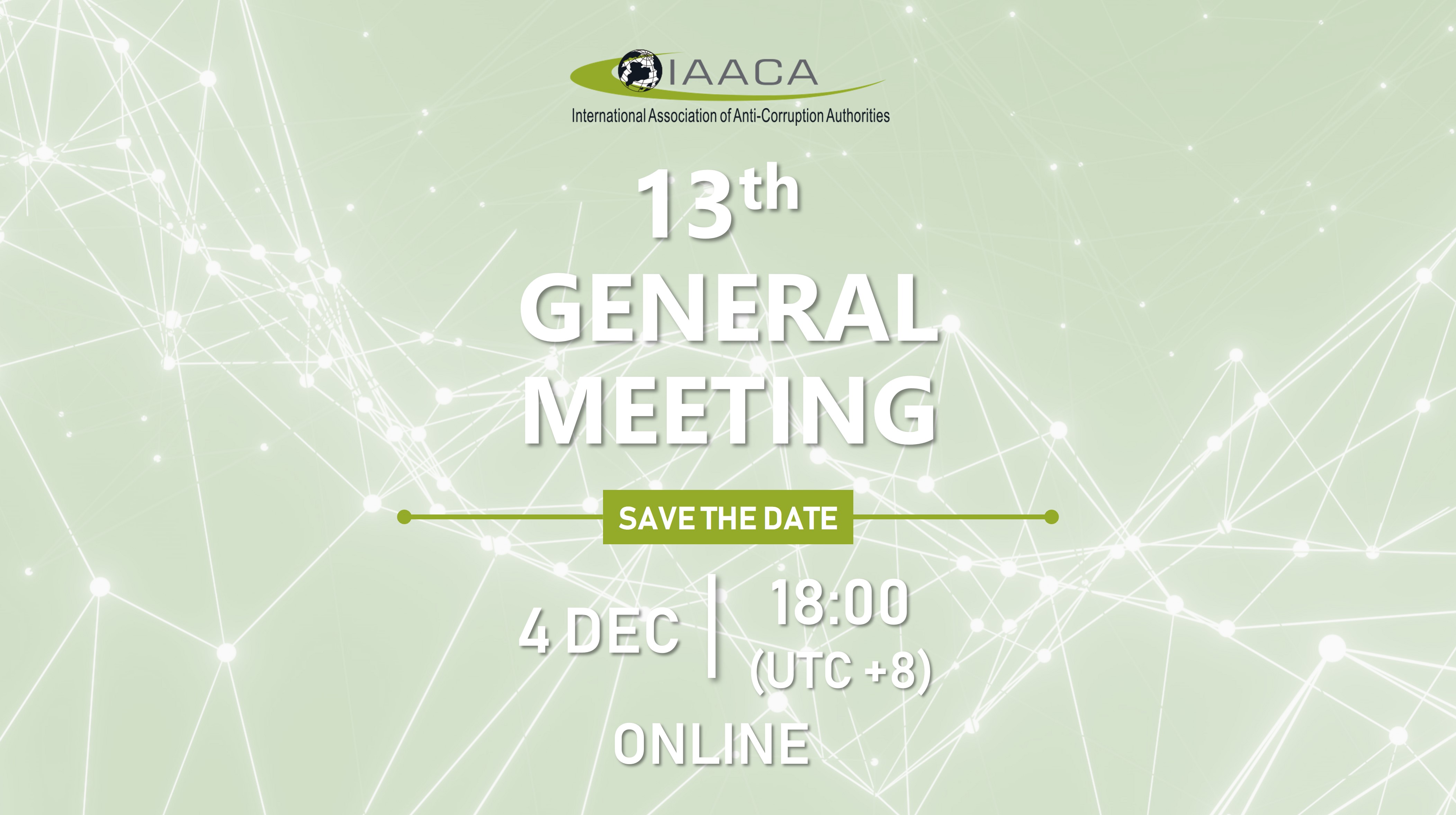 IAACA Secretariat is pleased to announce that the 13th General Meeting will be held on Monday, 4 December 2023 at 6:00 pm (Hong Kong time; UTC+8) in virtual format.