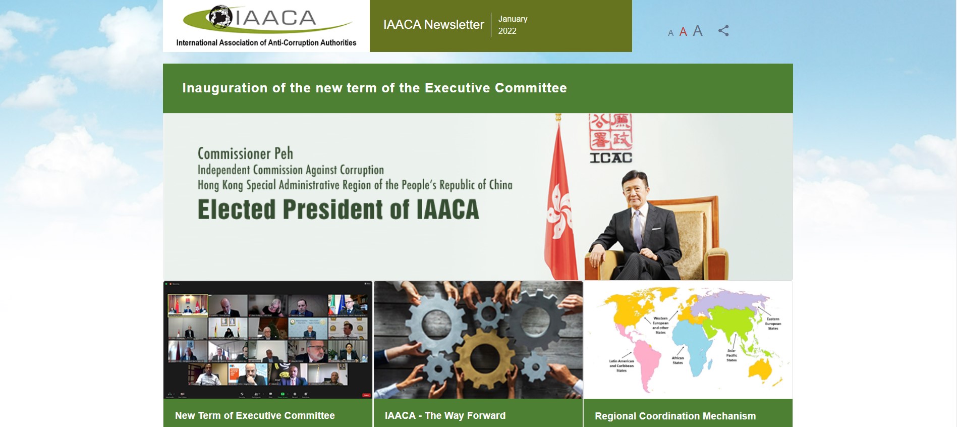 In the General Meeting held on 5 January 2022, Mr Simon Peh, Commissioner of the Independent Commission Against Corruption, Hong Kong, China (Hong Kong ICAC), was elected the President for the new three-year term (2022-2024).